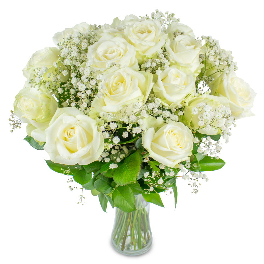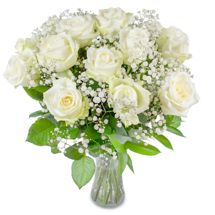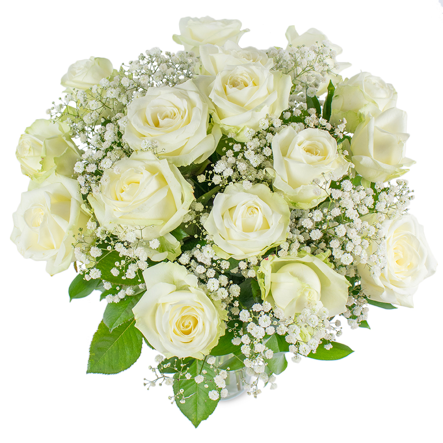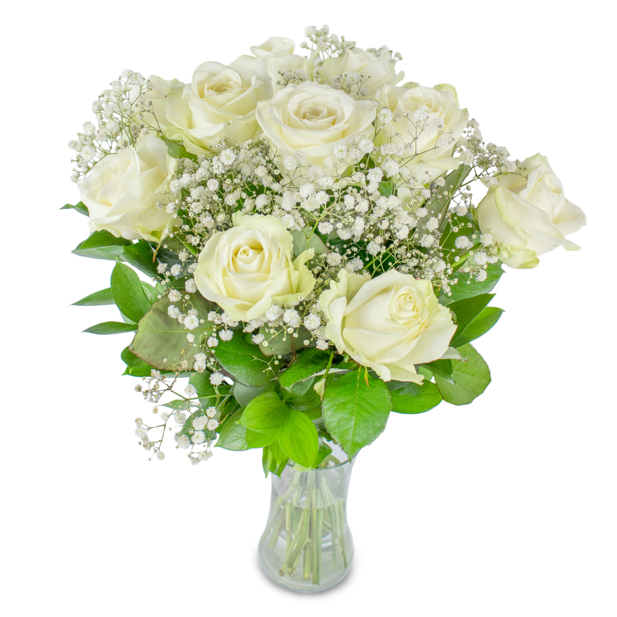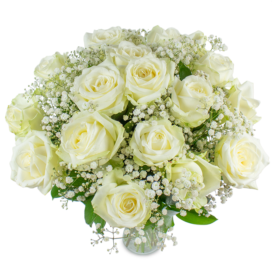 Celebrate beauty with our exclusive white rose bouquet, an ensemble of freshness and elegance. Featuring large-headed white roses paired elegantly with delicate gypsophila and vibrant aspidistra leaves, this arrangement is meticulously selected to impress and inspire.