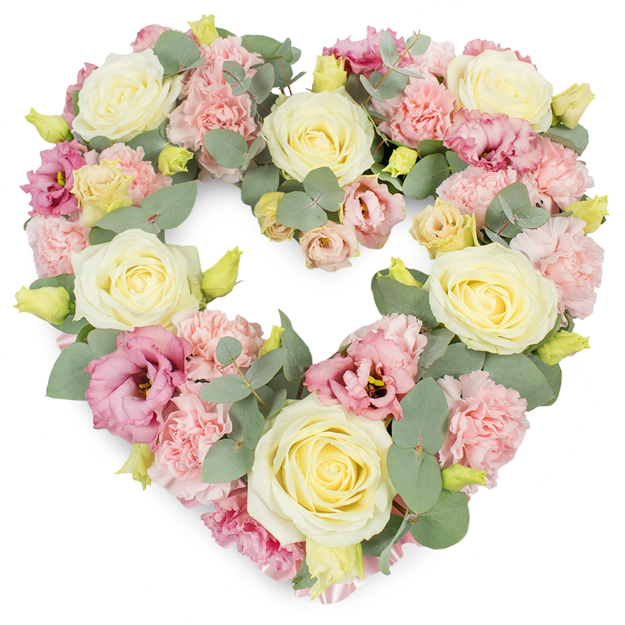 Show your heartfelt sympathy with our Heartfelt Sympathy Bouquet, a graceful arrangement designed to convey your deepest condolences. This bouquet combines pristine white roses, gentle pink carnations, elegant pink lisianthus, and fresh eucalyptus leaves, artfully arranged to create a soothing and beautiful display.